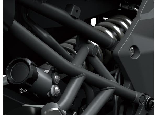 An increase in displacement from 1,043 cm3 to 1,099 cm3 gives the Versys 1100’s engine a boost in power from 120 PS to 135 PS. The more robust mid-range and increased high-rpm power contribute to increased comfort when cruising on the highway, facilitating long-distance touring. The climb from low through high rpm is even more exhilarating, while superb throttle response, strong torque at all rpm, and a seductive intake howl further contribute to riding excitement.