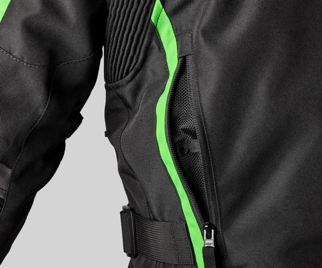 Stretch panels, arm and waist adjusters all support a more comfortable contoured fit. Additional supporting features include MAX zippers, a 360° connection zipper for connecting to any RST garment and multi-pocketed intake and exhaust ventilation areas which can be opened as required to channel airflow in, around and out of the jacket.