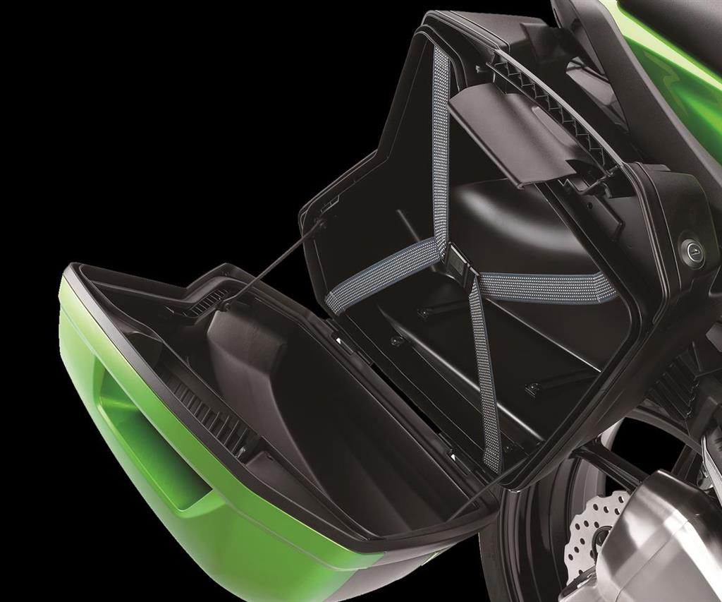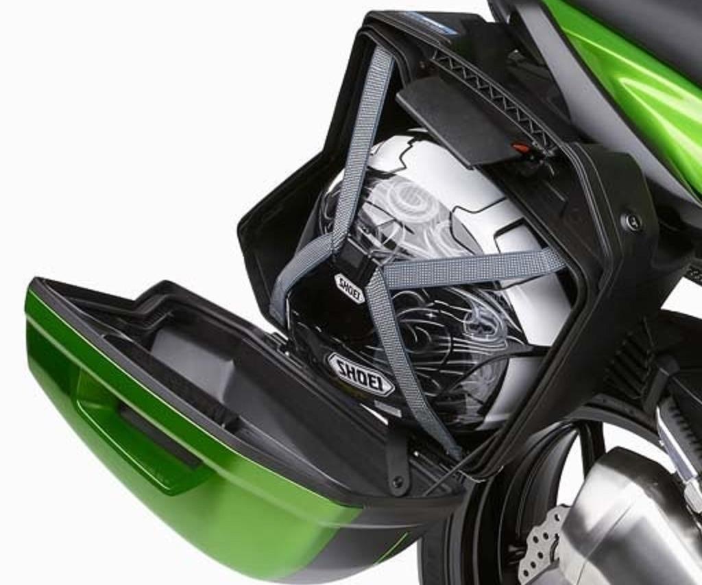 The Quick-Release 56 litre (2x 28 L) Pannier System will even fit most full-face helmets. Panniers attach to the factory handgrips and give a clean look when removed. Features our One-Key System: the bike ignition key also fits the pannier locks. You can carry the panniers easily because they are equipped with hand grips.