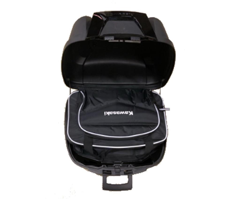 Rigid, water resistant bag with compartments for business equipment and shoulder straps. (Designed for the 47-Litre topcase)